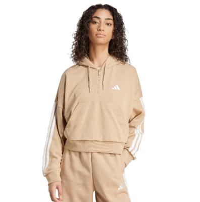 Este buzo con capucha adidas es perfecto para salir a dar un paseo o relajarte en el sofá. Su tejido de felpa francesa se siente muy suave contra tu piel, y las 3 tiras en las mangas ponen el toque final a este look cómodo y elegante. Subí el cierre, ajustá la capucha y sentí la máxima comodidad. Al elegir contenido reciclado, podemos reutilizar materiales que ya han sido creados, lo que ayuda a reducir los residuos. La elección de materiales renovables nos ayudará a eliminar nuestra dependencia de recursos finitos. Nuestros productos hechos con una mezcla de materiales reciclados y renovables incorporan al menos un 70 % de estos materiales.