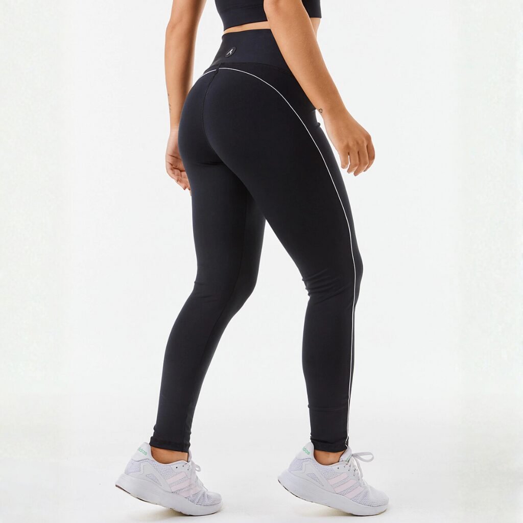 Su diseño incluye costuras estilizadas en contraste que realzan la silueta y aportan un toque moderno. La cintura alta y anatómica sostiene el abdomen con suavidad, ofreciendo mayor seguridad en actividades de impacto bajo a medio. El tejido de secado rápido mantiene la piel fresca y seca, ideal para gym, running, funcional o yoga.