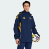 Deja que tu talento en el fútbol brille, sin importar el frío ni la lluvia. Esta campera de Boca Juniors de adidas está hecha para ser ligera y ágil en el juego, pero también lo suficientemente resistente como para protegerte del clima. Con su acabado resistente al agua, te mantiene seco en lluvias ligeras, y su capucha plegable mejora la visibilidad y minimiza la resistencia al viento. Un escudo del equipo muestra tu orgullo.