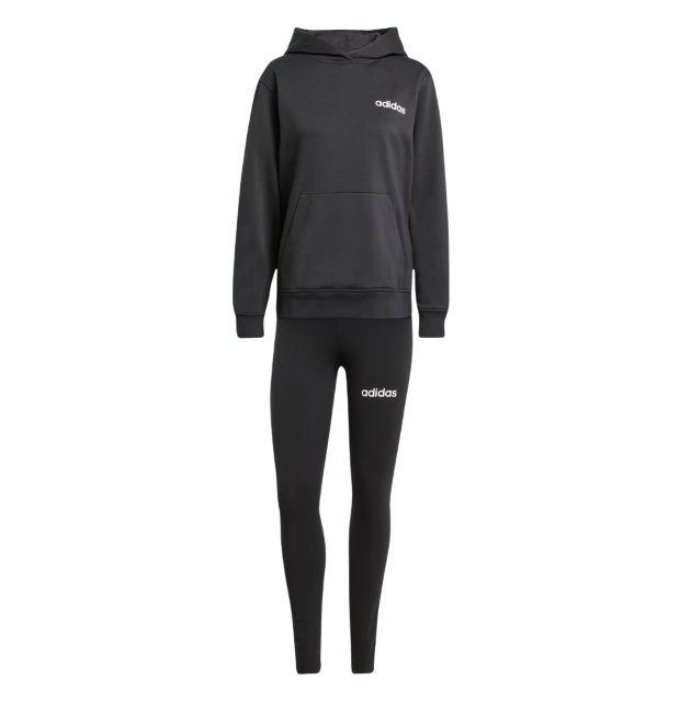 Despreocupate de tu vestimenta diaria con este conjunto deportivo adidas. La combinación incluye un buzo con capucha de corte holgado con aberturas extralargas en los dobladillos laterales, una amplia capucha y un espacioso bolsillo tipo canguro. Las calzas a juego tienen un tacto suave y cómodo, ideal para los días de paseo o las noches en casa.