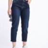 Este jean mom combina estilo clásico de tiro alto con tela elastizada, para ofrecer comodidad sin perder forma. Es ideal para el uso diario y se adapta muy bien al cuerpo. Cómodo y favorecedor: el tiro alto realza la cintura y alarga la figura.