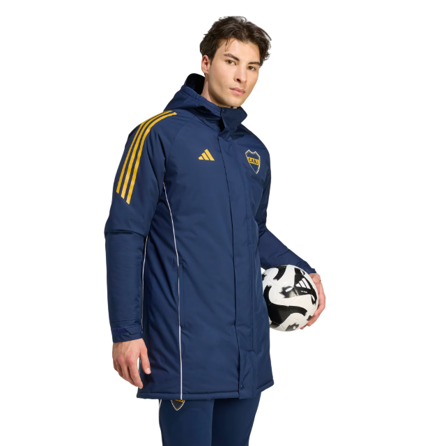 a sea entre ejercicios de entrenamiento o mirando el partido desde la tribuna, abrigate con esta parka de Boca Juniors de adidas. Forma parte de la gama de entrenamiento del club, y te mantendrá abrigado y seco gracias a su grueso relleno, su acabado resistente al agua y sus puños ajustables. Mientras te resguardás del clima, el escudo serigrafiado del club iluminará tu pasión por el fútbol.