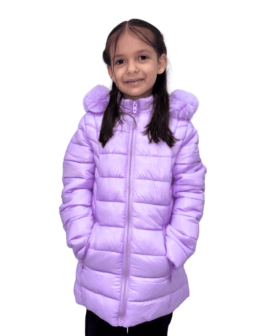 Estilo y abrigo para las más pequeñas. Esta parka infantil se destaca por su diseño largo matelizado que brinda mayor cobertura y protección contra el frío. Incluye una capucha desmontable con pompones de peluche que le aportan un toque divertido y encantador. Cuenta con cierre frontal, bolsillos laterales con cierre y un calce cómodo que permite libertad de movimiento.