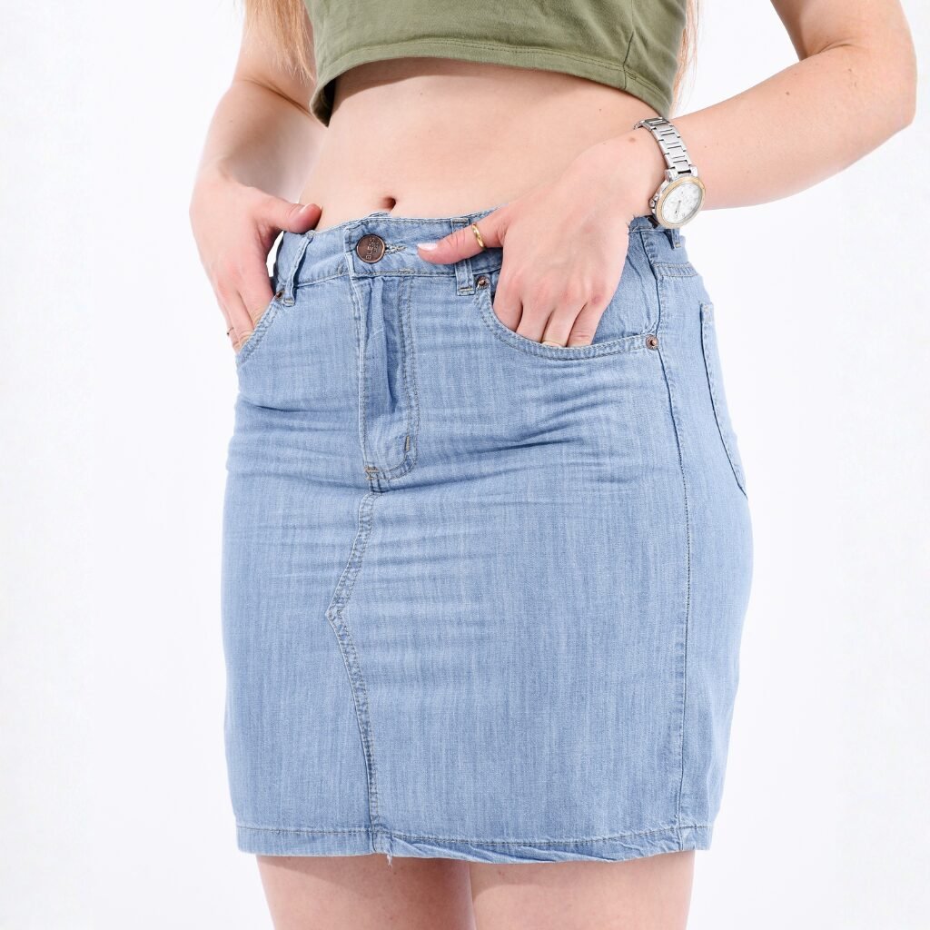 La pollera de jean clásica combina el estilo atemporal del denim con un corte cómodo y versátil. Su confección en tela de jean suave y liviana garantiza libertad de movimiento y un calce relajado, ideal para usar en cualquier momento del día.
