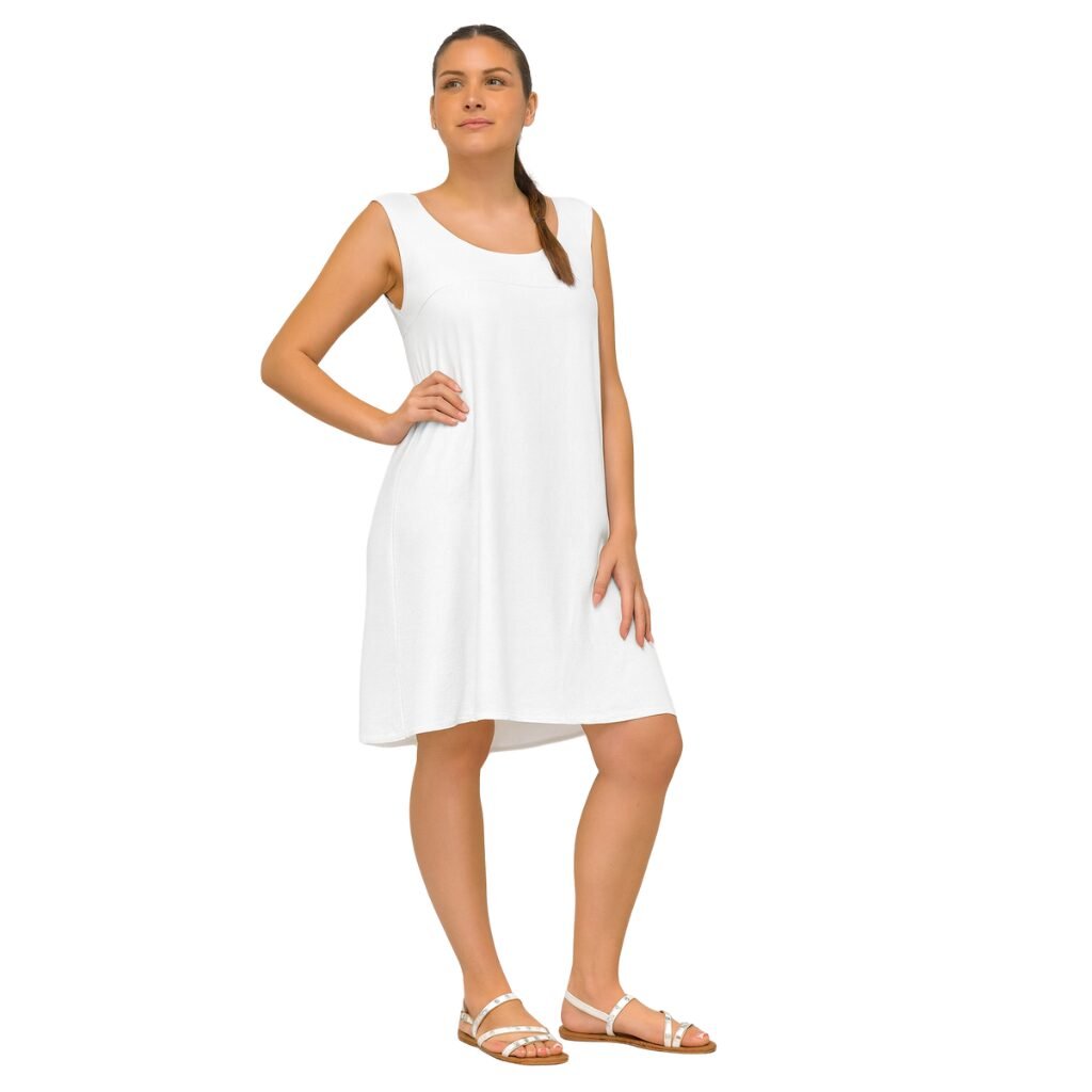 Su diseño de breteles anchos y escote clásico aporta simplicidad y un estilo moderno, convirtiéndolo en una prenda versátil que puede adaptarse a distintas ocasiones. La longitud a la altura de la rodilla lo hace ideal para el uso diario, salidas informales, eventos relajados o incluso para vestir en verano.